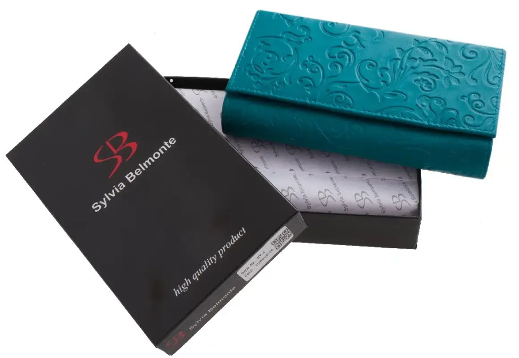 Sylvia Belmonte kvetinová červená kožená peňaženka 13,3 × 9,5 cm