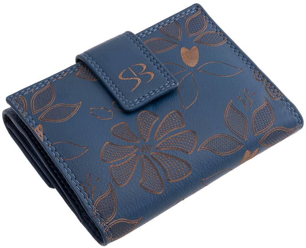 Čierna kožená dámska peňaženka s potlačou kvetov Sylvia Belmonte