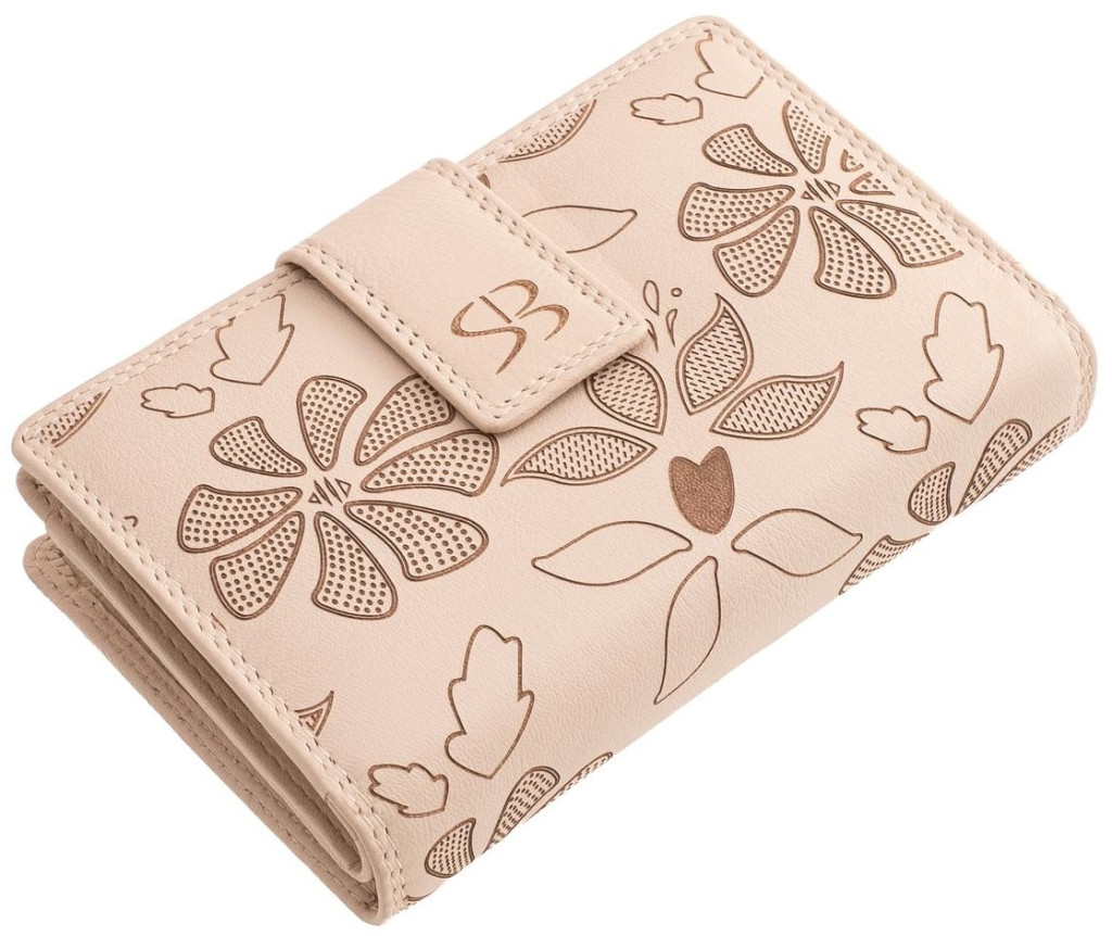 Čierna kožená dámska peňaženka s potlačou kvetov Sylvia Belmonte
