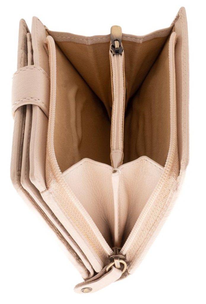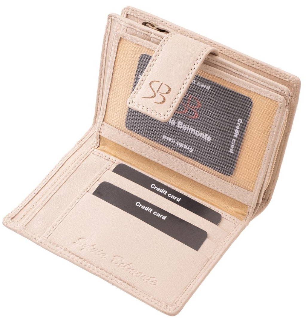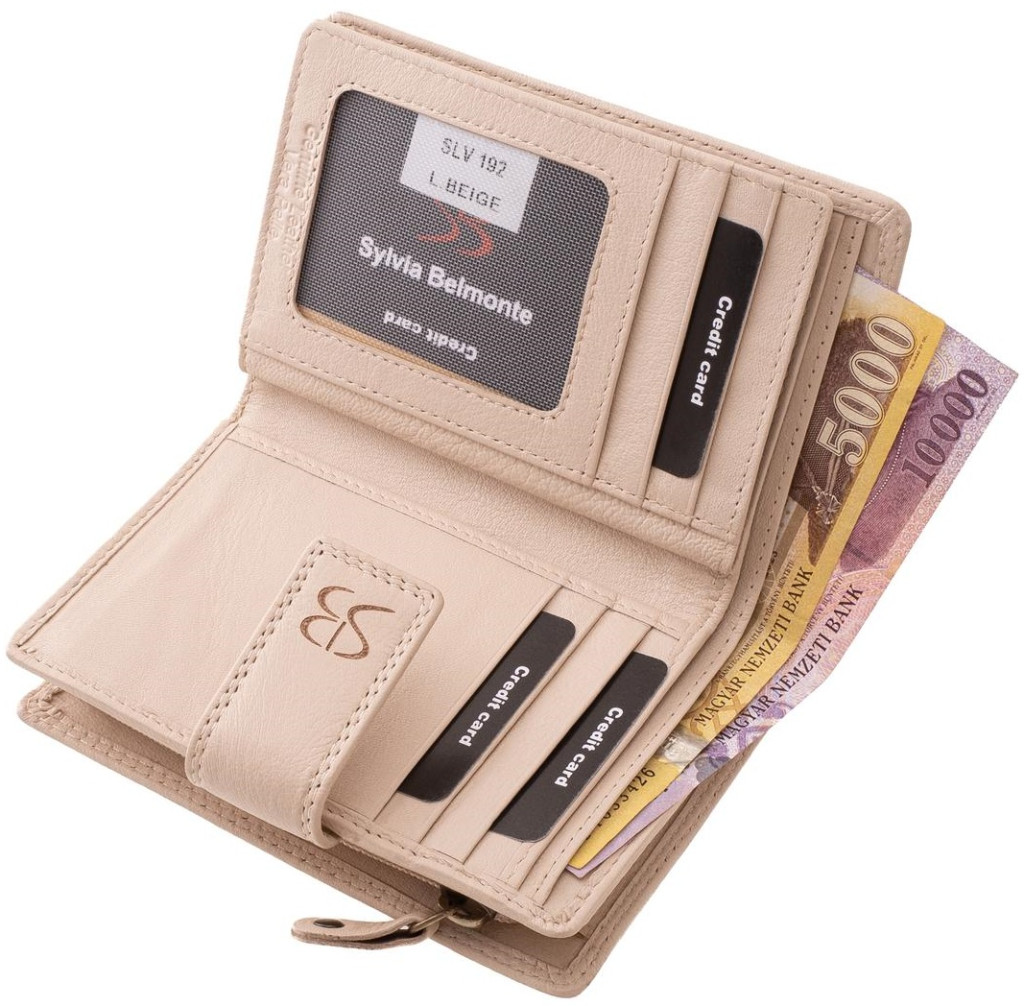 • Vo vnútornej polovici peňaženky v blízkosti držiakov na karty je umiestnené väčšie vrecko na zips, ktoré umožňuje jednoduché uloženie našich menších cenností