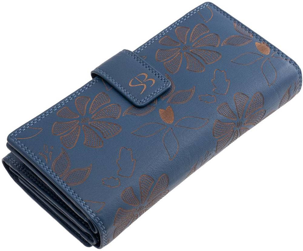 Čierna kožená dámska peňaženka s potlačou kvetov Sylvia Belmonte
