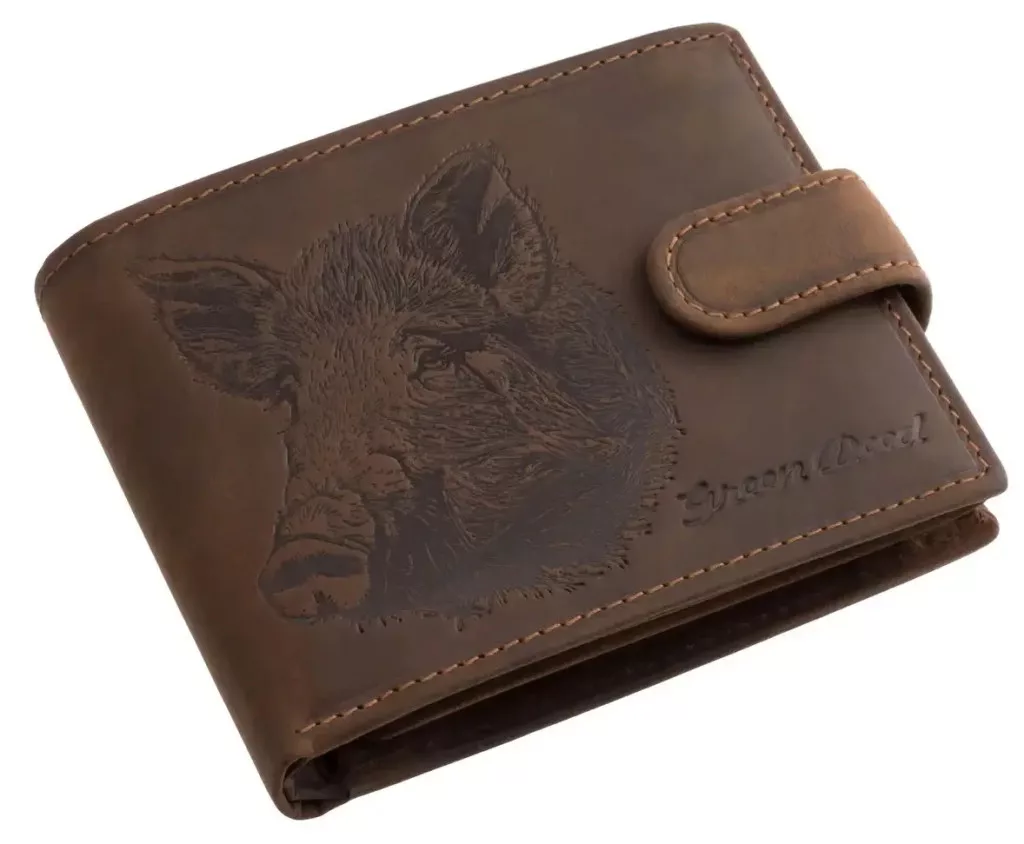 Peňaženka značky GreenDeed určená pre mužských rybárov, vyrobená z kvalitnej prírodnej hovädzej kože. Obal peňaženky sa vyznačuje špeciálnym dizajnom, detailnou kresbou sumca, ktorá je zvýraznená ozdobným prešívaním. Výrobok je možné uzavrieť praktickým vonkajším prepínacím pútkom. Peňaženka má dvojkomorový držiak na papierové peniaze, ktorý má aj ďalšie skryté vrecko na zips, malý držiak na drobné a niekoľko priehradiek na karty a doklady.