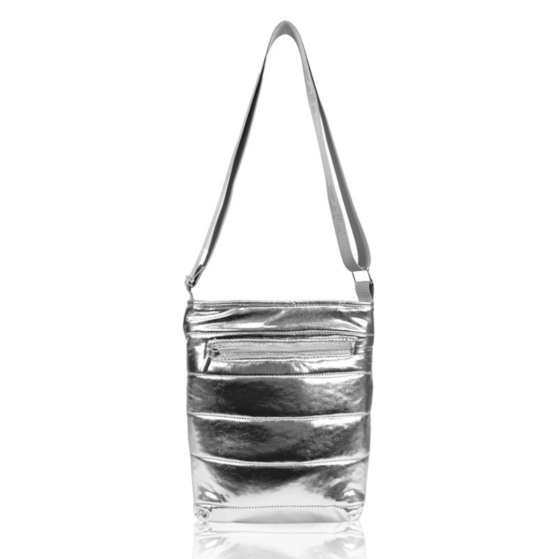 Strieborná dámska bočná kabelka Zellia, taška cez rameno 25 x 19 cm