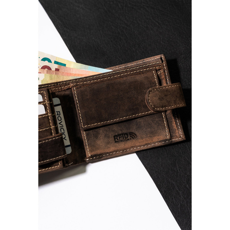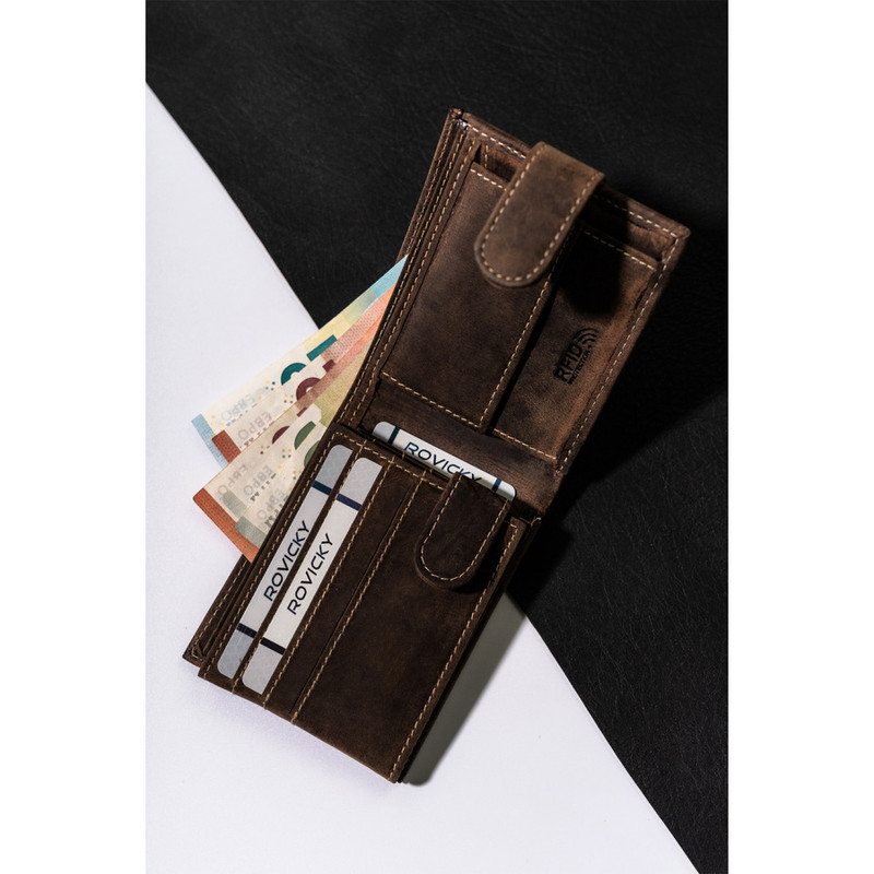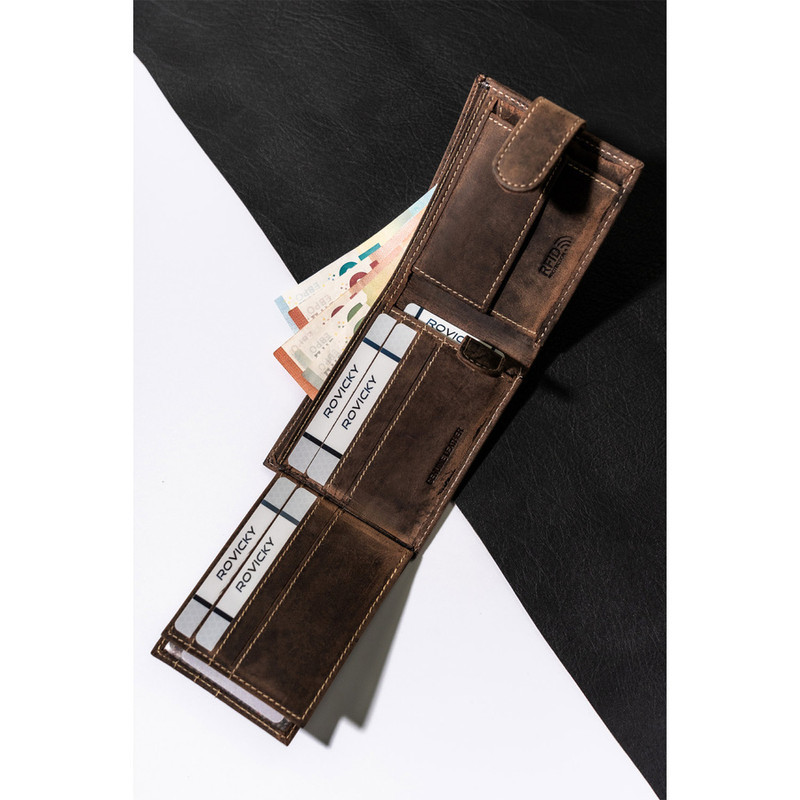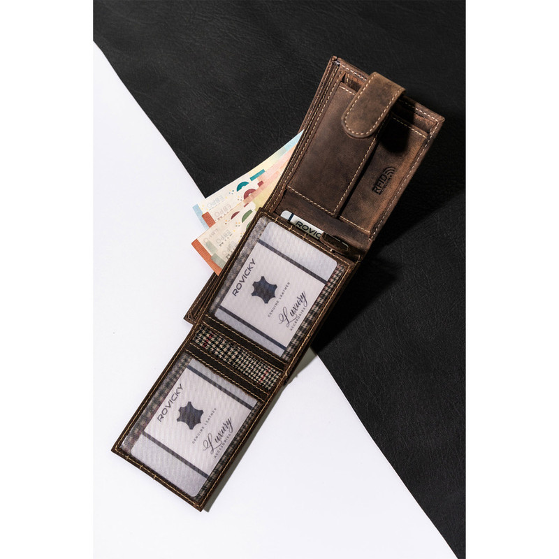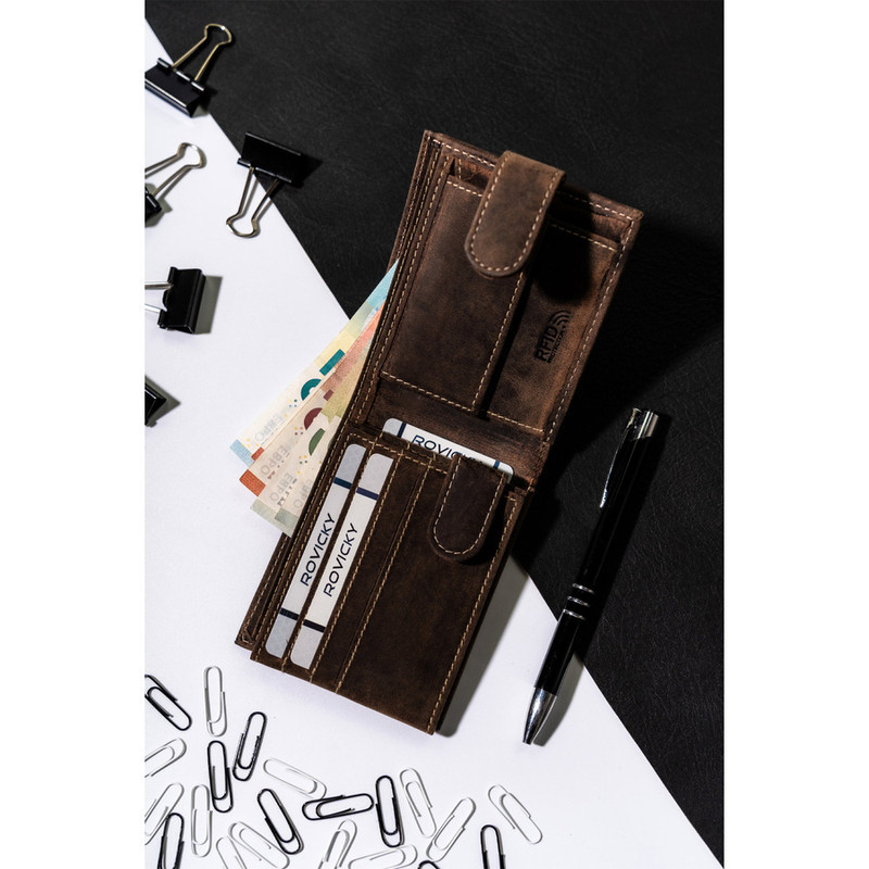 Pánska kožená peňaženka Rm-05L-Baw hnedá - s ochranou proti RFID -