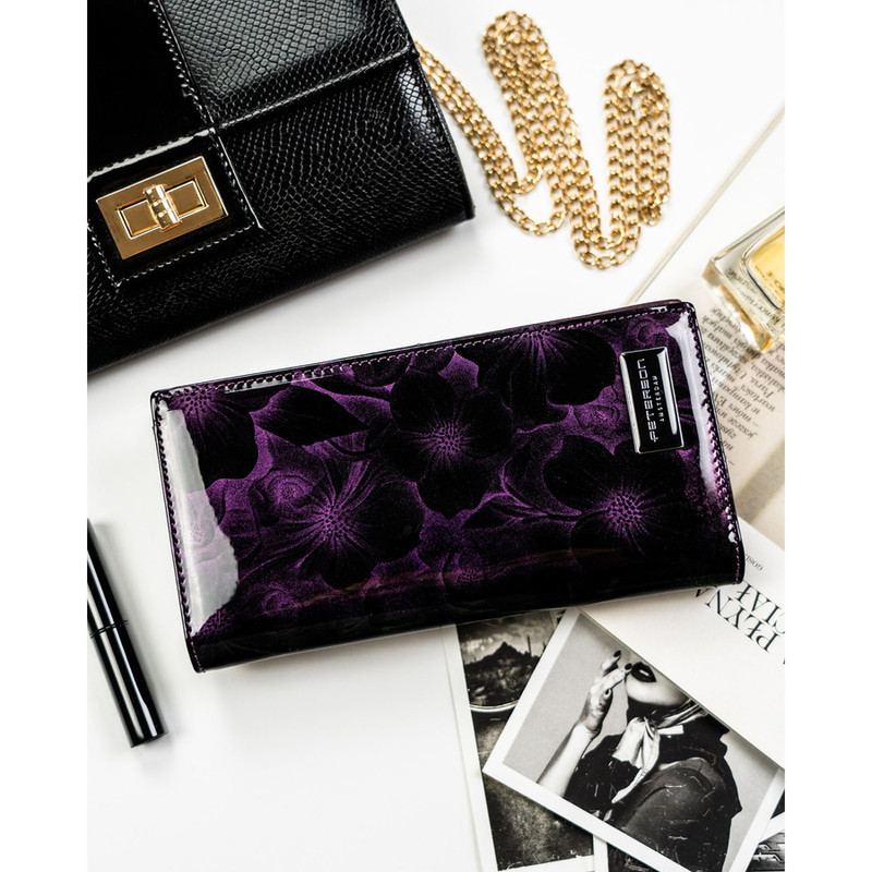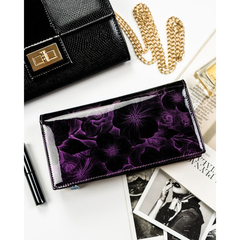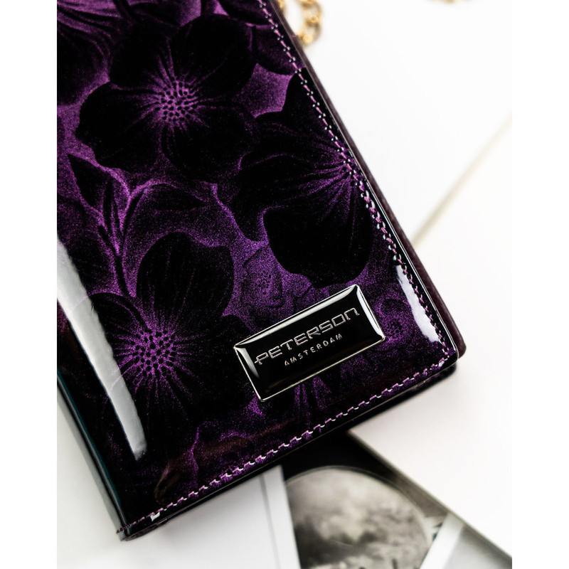 Peterson fialová dámska kožená peňaženka - kvetinová elegancia s magnetickým a zipsovým zapínaním, RFID ochrana