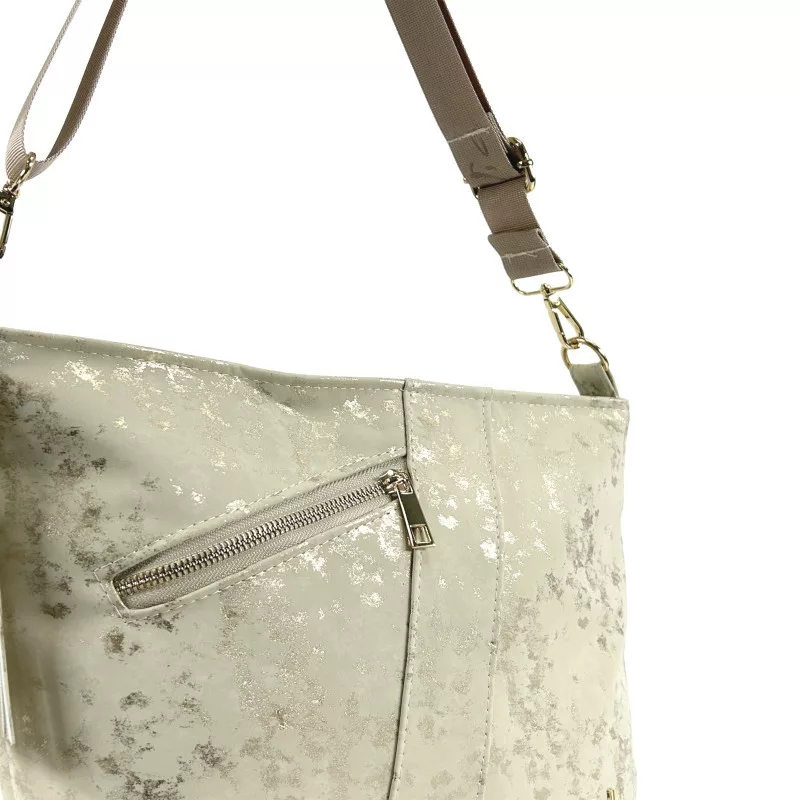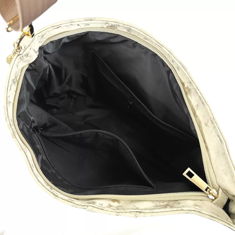 Zellia ZLB396 bézs, arany rozsdamintás oldaltáska 29 x 25 x 9 cm