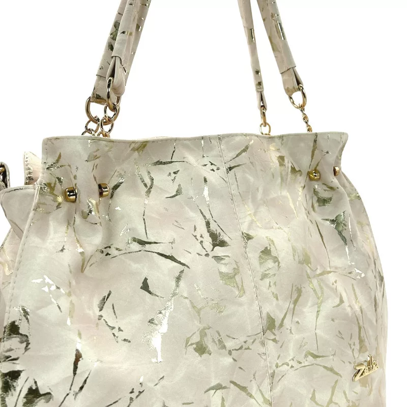 Zellia ZLB393 női válltáska bézs-arany márvány mintás  oldalpántal 30 x 29 x 12 cm