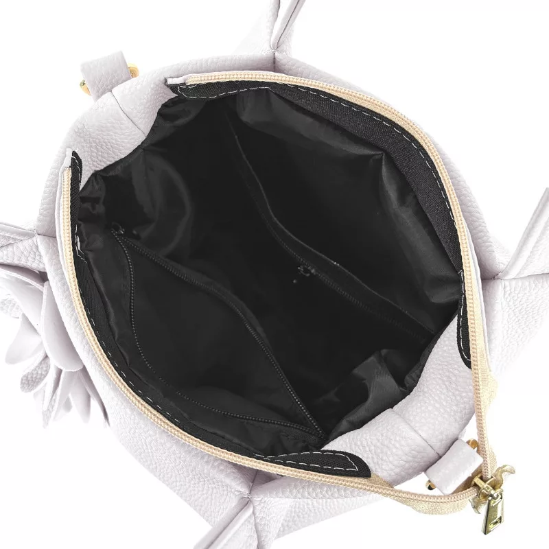 A Zellia ZLB324-F púder női kézitáska virágdísszel elegáns és finoman nőies megjelenésével a mindennapok stílusos kiegészítője. A világos púder árnyalat lágy és kifinomult hatást biztosít, míg a táska elején elhelyezett virágdísz romantikus és dekoratív karaktert ad az összhatásnak.