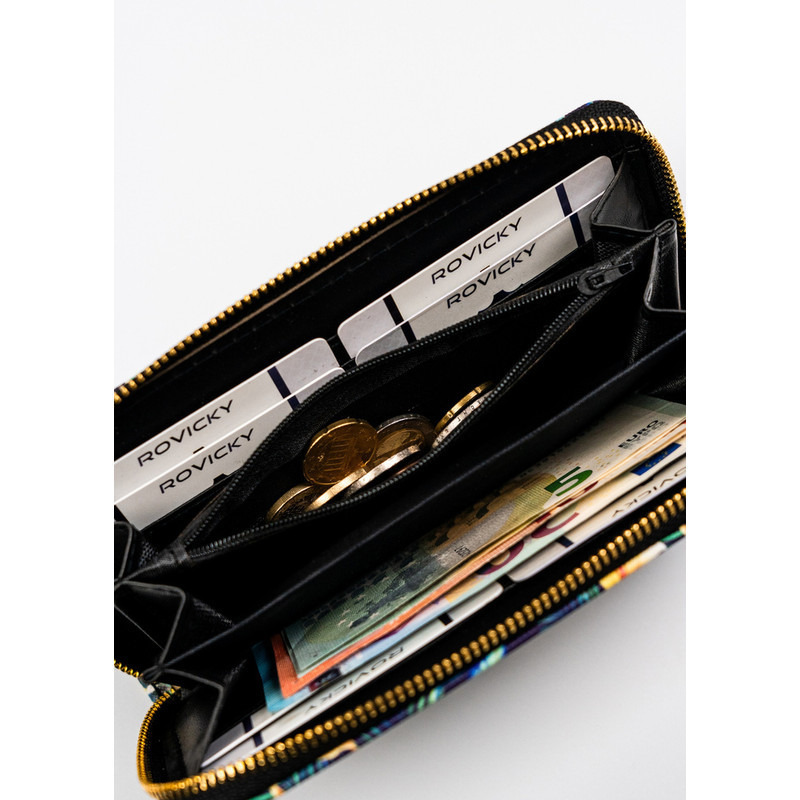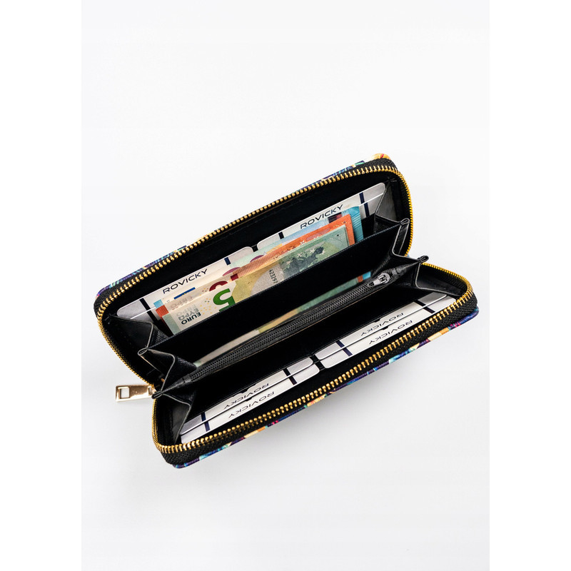 • Tri priehradky na bankovky a samostatné vrecko na mince vám umožňujú úhľadne uložiť hotovosť.