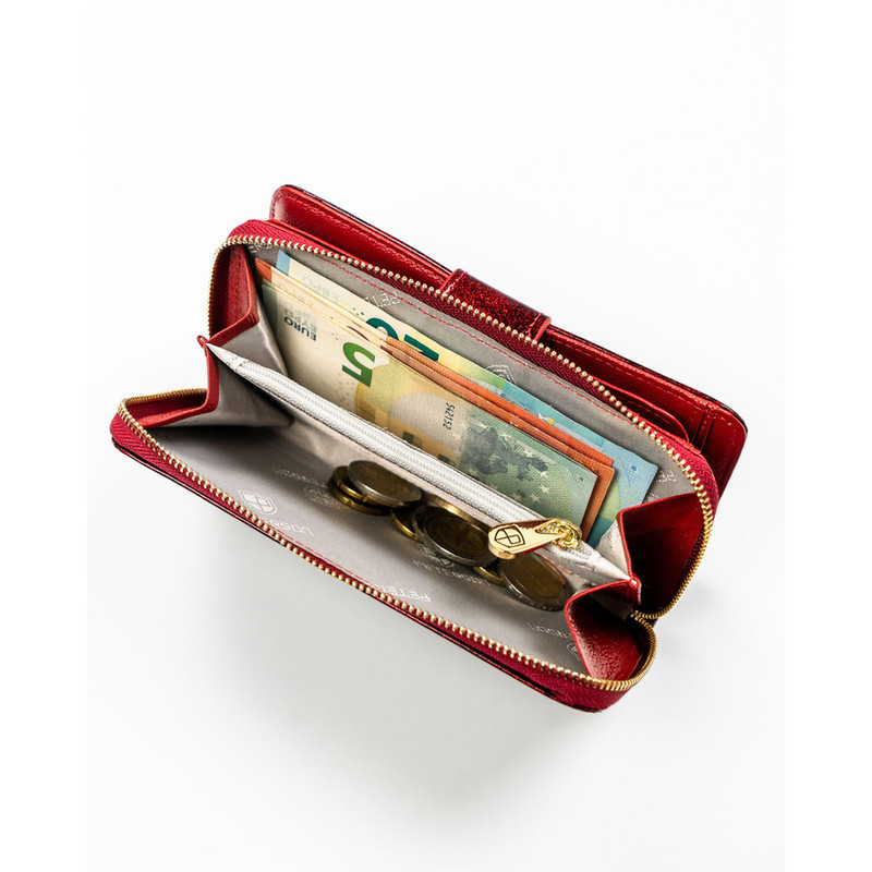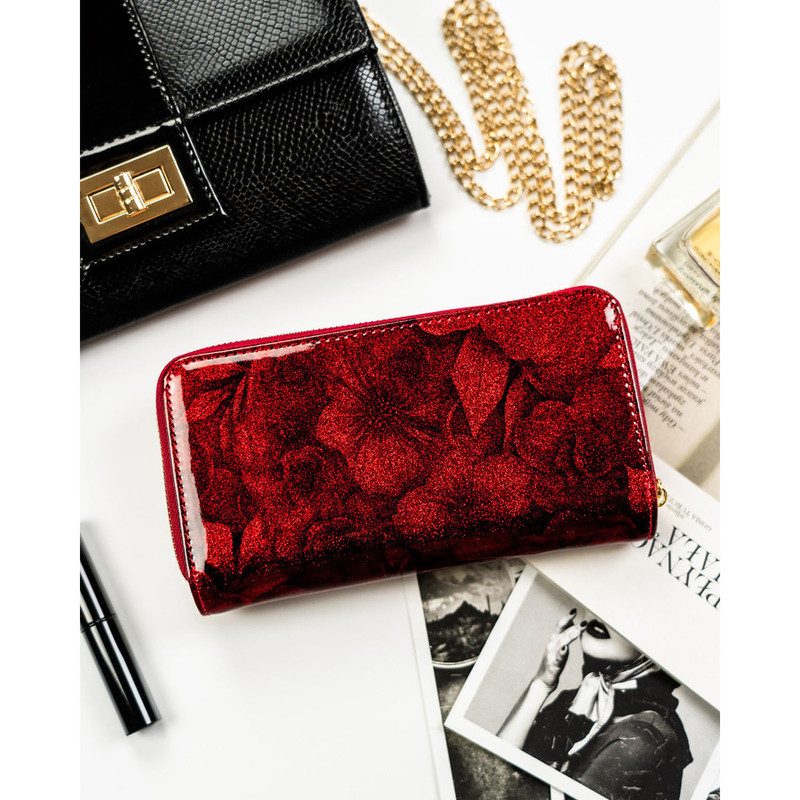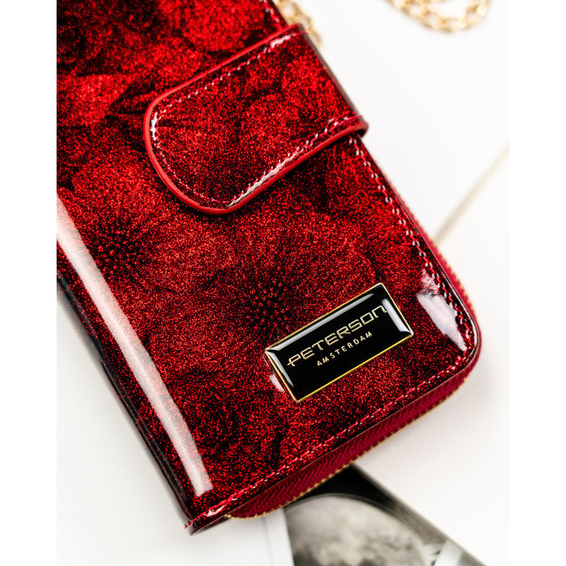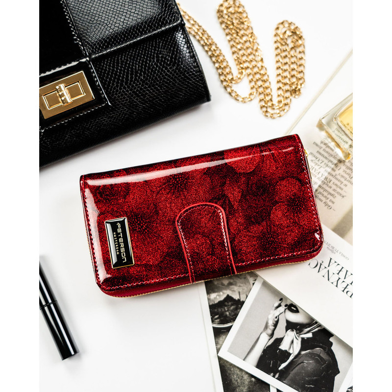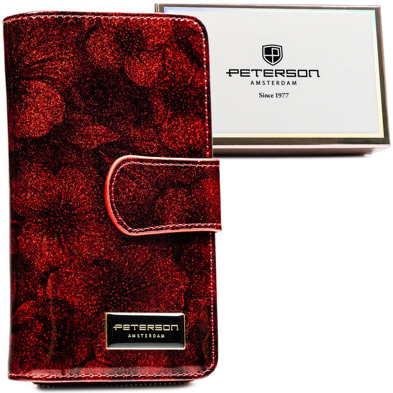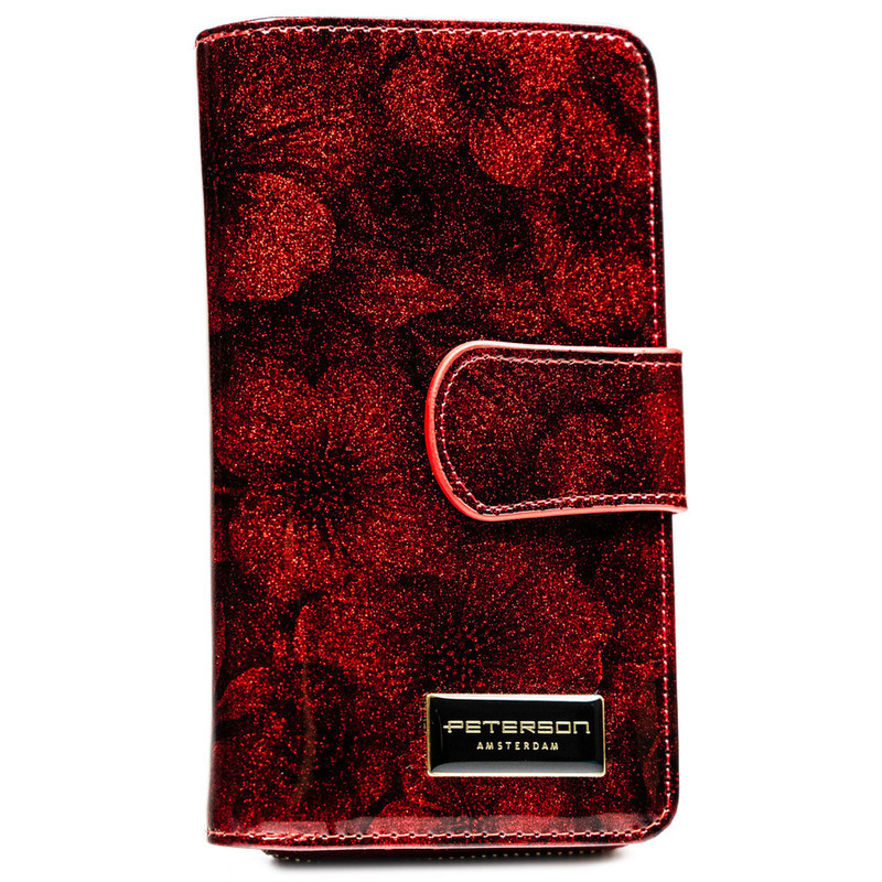 Dámska kožená peňaženka Peterson červená – Kvetinová elegancia z lakovanej kože s RFID ochranou a dostatkom úložného priestoru