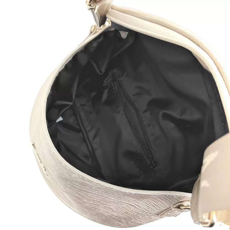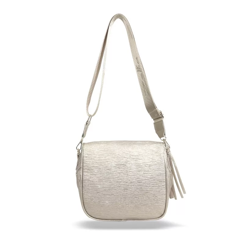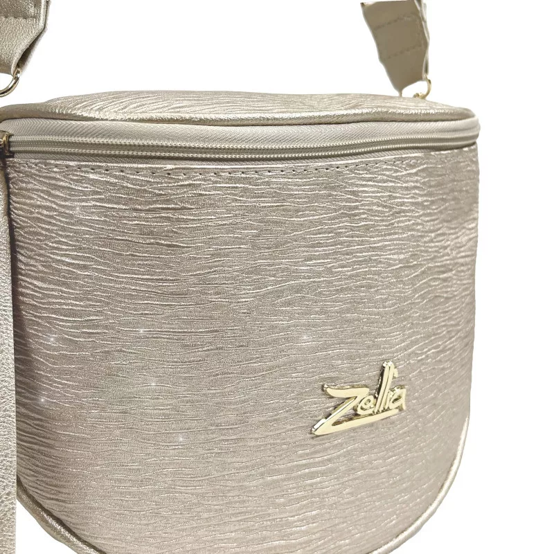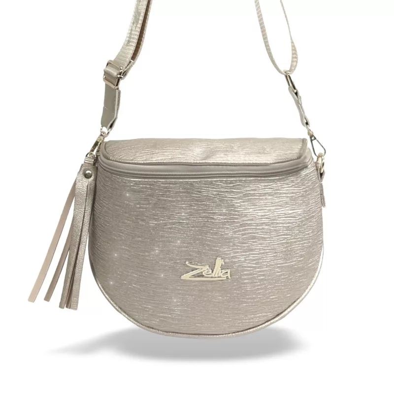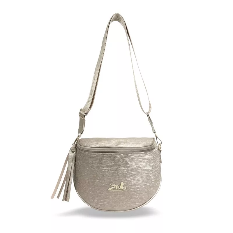 Kabelka cez rameno Zellia v štýle šampanského s čistým, elegantným vzhľadom a kompaktným dizajnom je ideálnou voľbou na každodenné nosenie. Jemne trblietavý šampanský odtieň predstavuje ženský, no zároveň decentný štýl, vďaka čomu je perfektným doplnkom na pracovné dni aj voľnočasové aktivity.