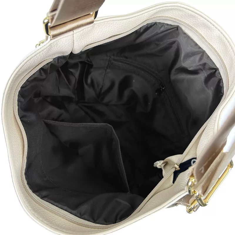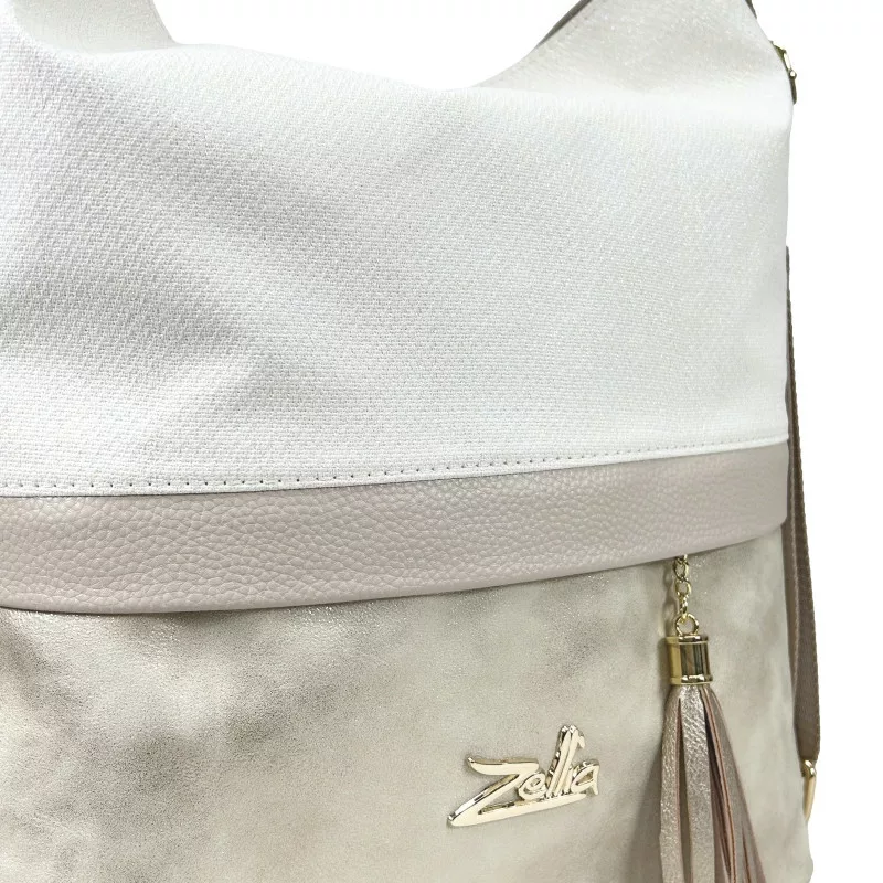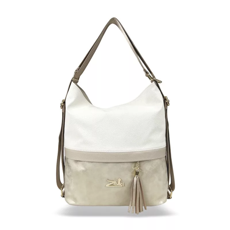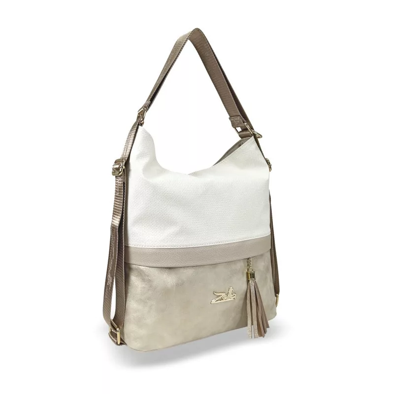 Dámska taška cez rameno Zelliamodel 24040 kombinuje štýlový vzhľad a praktické využitie. Béžovo-zlatá farebná schéma poskytuje decentný, no zároveň pútavý vzhľad, ktorý je ideálny na každodenné nosenie, do kancelárie alebo dokonca na ležérne outfity. Tento model sa dá jedným pohybom premeniť na batoh, vďaka čomu je ideálnou voľbou pre tých, ktorí si cenia všestrannosť a pohodlie.