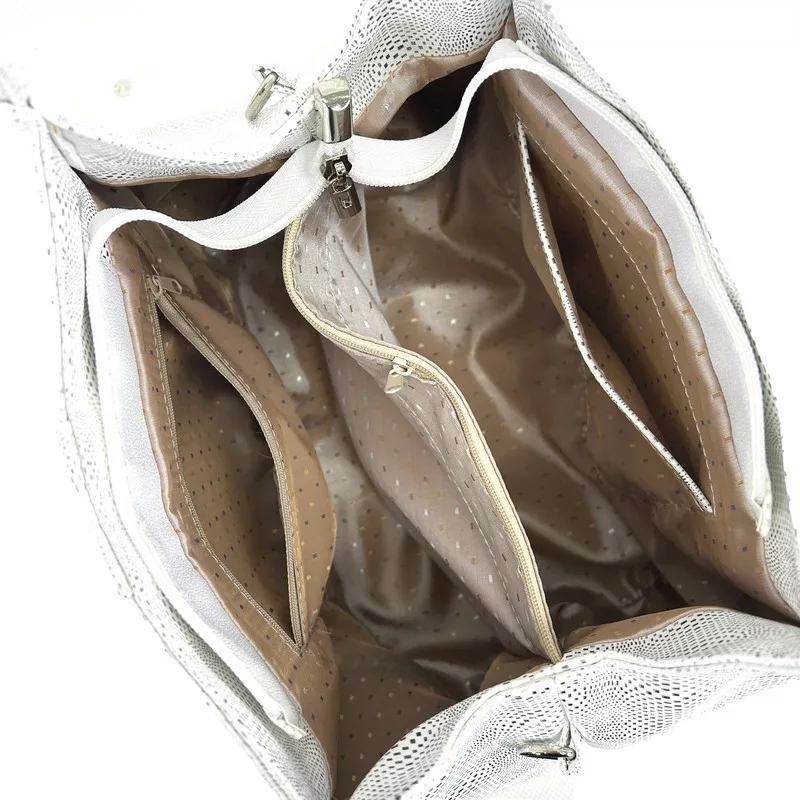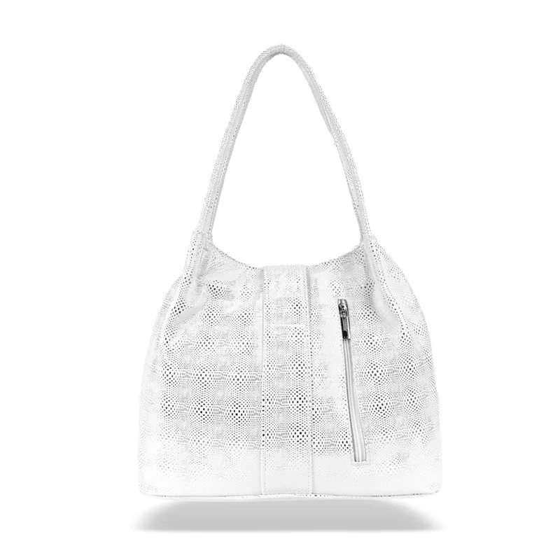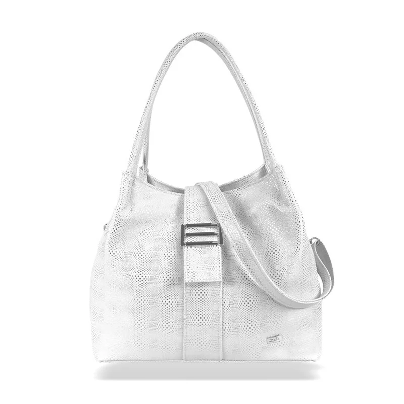 Zellia Zvn24008 női fehér-ezüst válltáska, oldalpántal 32 x 27 x 15 cm