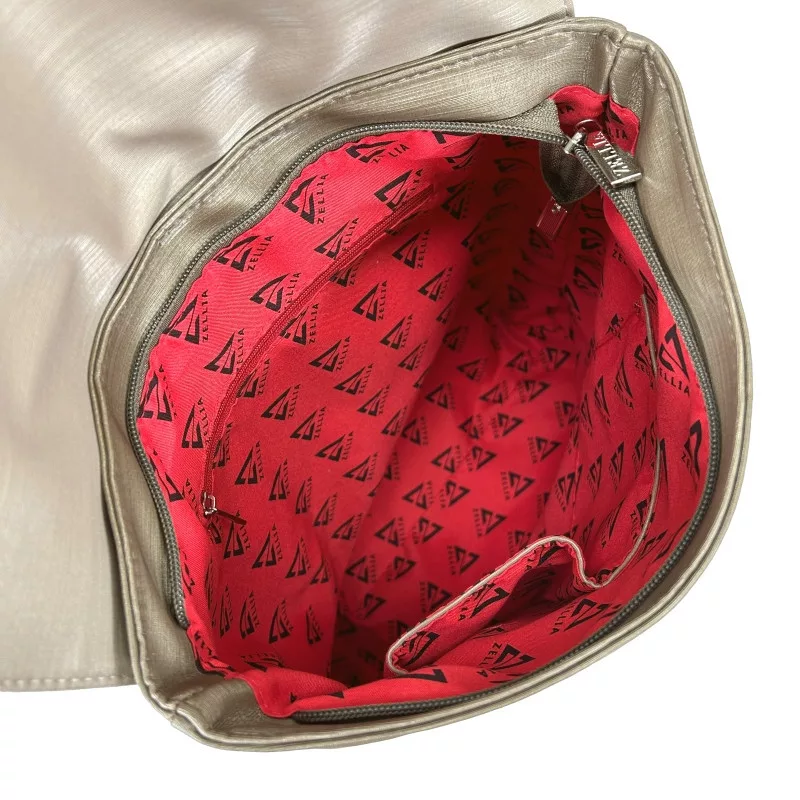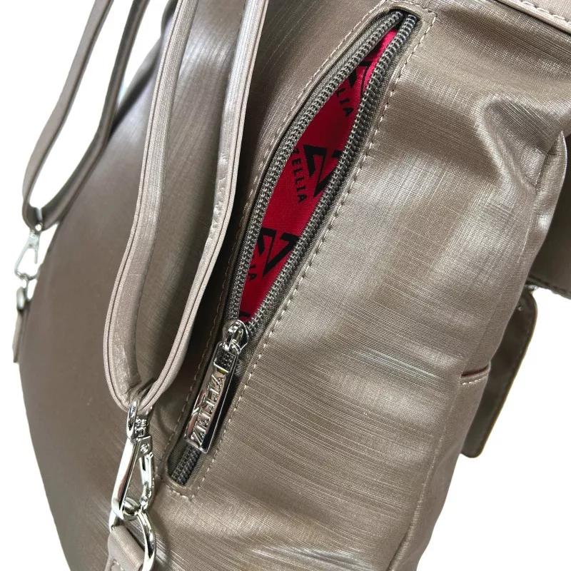 Bronzová Zellia class="_fadeIn_m1hgl_8">batoh ideálna voľba pre tých, ktorí milujú jedinečné, no dobre kombinovateľné doplnky. špeciálna farebná schéma a design vďaka táto taška je perfektná class="_fadeIn_m1hgl_8">do mestského života.