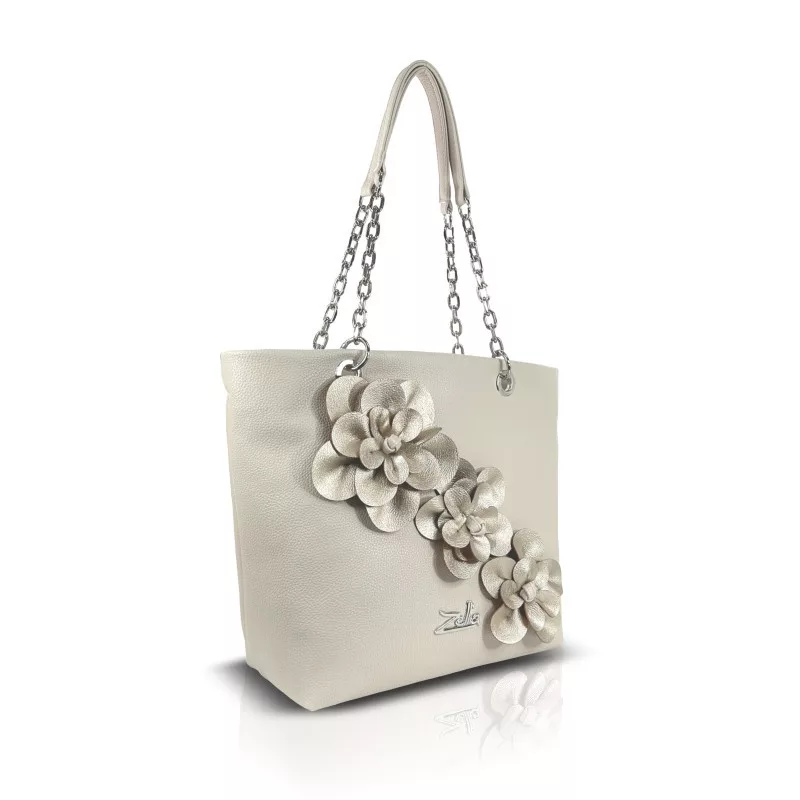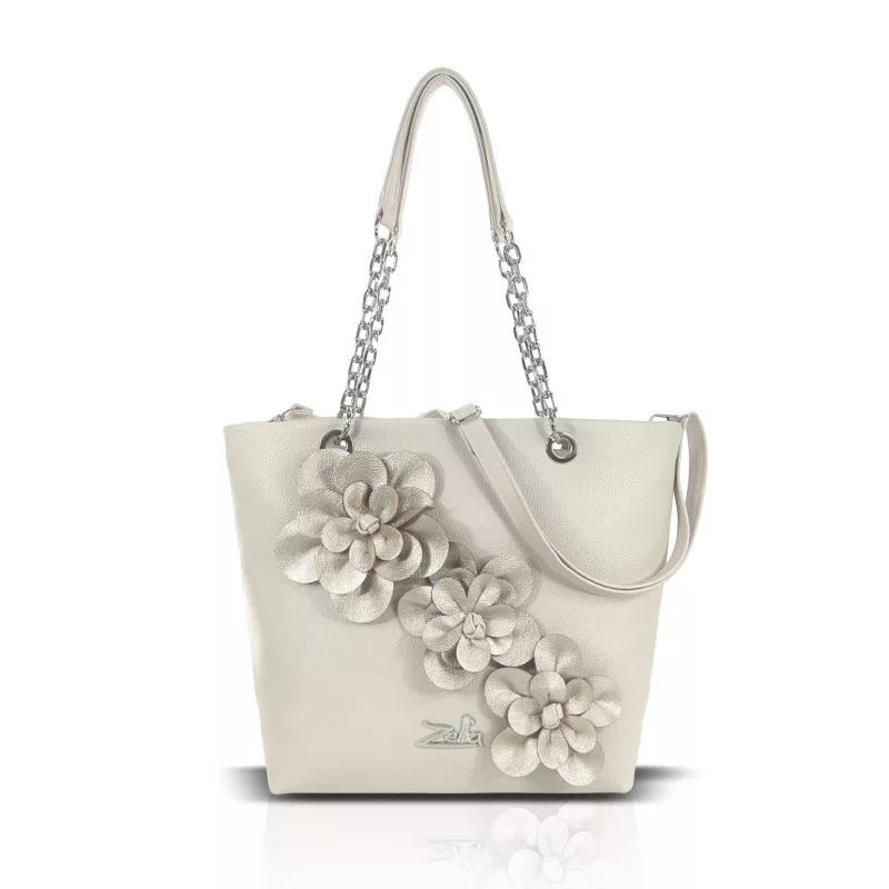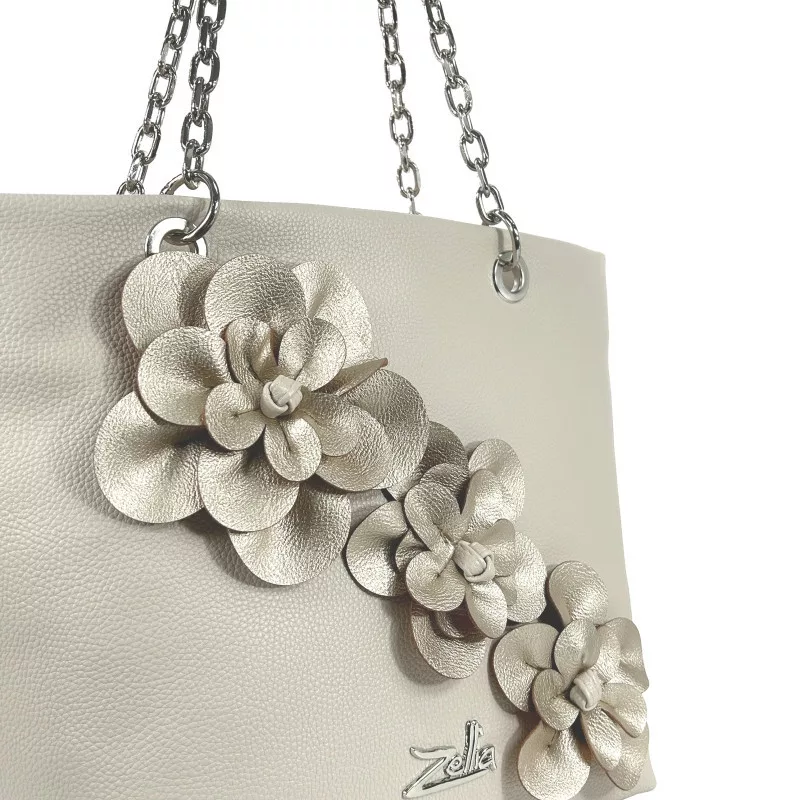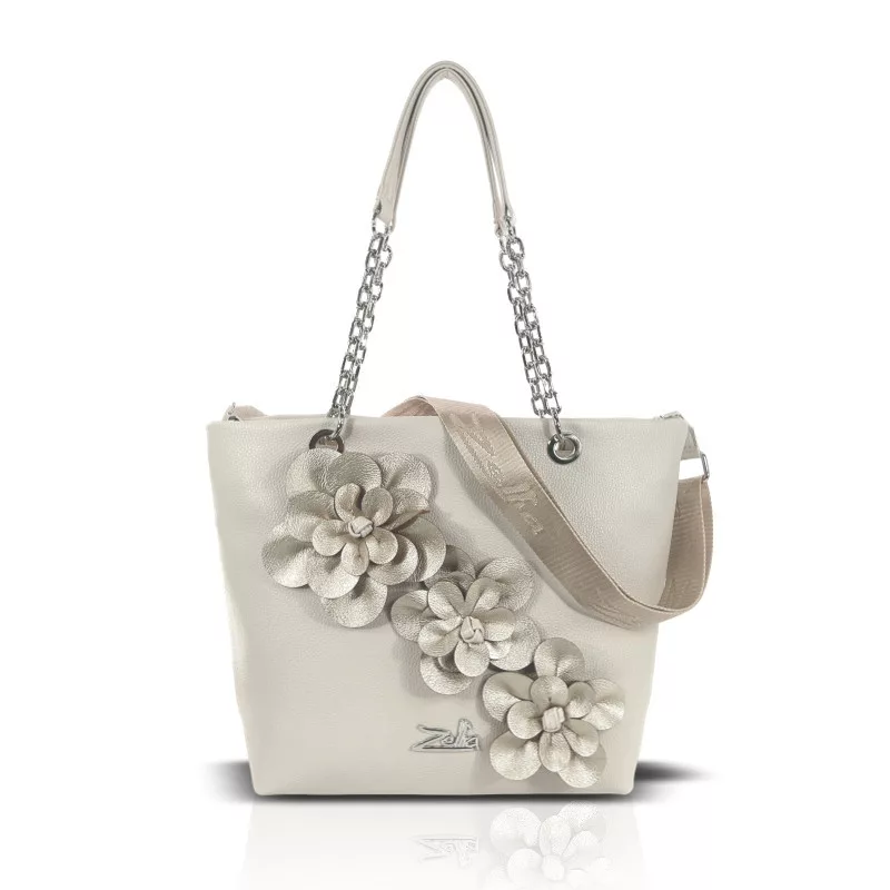 A Zellia 25134F fehér–ezüst női díszes válltáska elegáns és kifinomult megjelenésével a különleges alkalmak és a stílusos mindennapok kiemelkedő kiegészítője. A tiszta fehér alapot az ezüst virágapplikációk teszik igazán különlegessé, míg a láncos pántmegoldás modern és nőies karaktert ad a táskának.