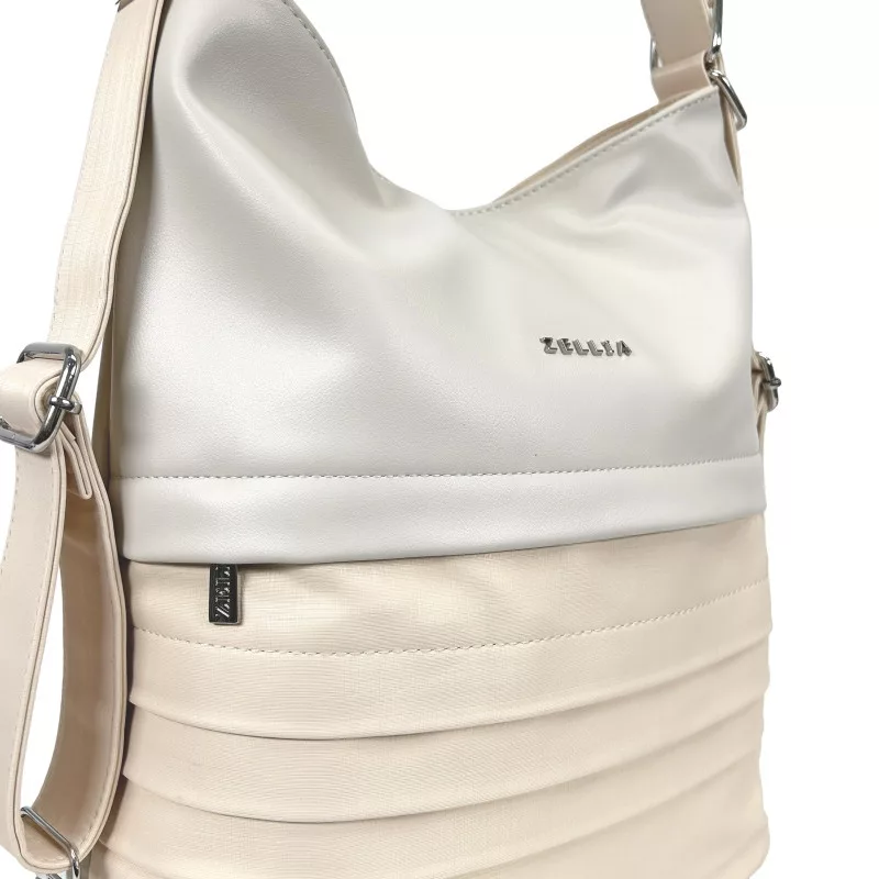 Béžovo-zlatá kabelka Zellia cez rameno nie je len elegantným doplnkom k vášmu vzhľadu, class="_fadeIn_m1hgl_8">ale aj mimoriadne všestranný: jednoduchým pohybom sa dá premeniť na batoh, takže sa prispôsobí vášmu dňu. class="_fadeIn_m1hgl_8">a vašej nálade. Béžovo-zlatá farba je jemná, ženská a ľahko sa kombinuje s jarnými alebo letnými outfitmi. class="_fadeIn_m1hgl_8">s kombináciami.