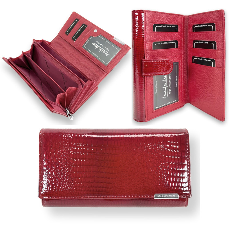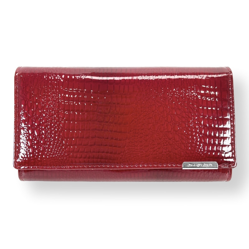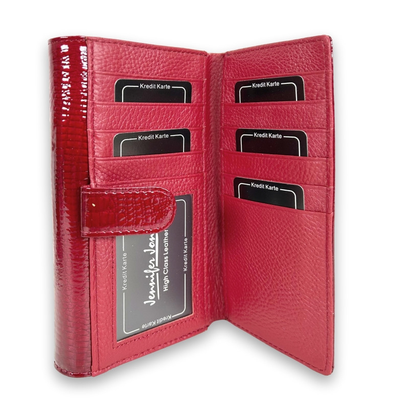 Dámska kožená peňaženka Jennifer Jones červená - Lesklá elegancia s RFID ochranou a extra úložnou kapacitou na karty