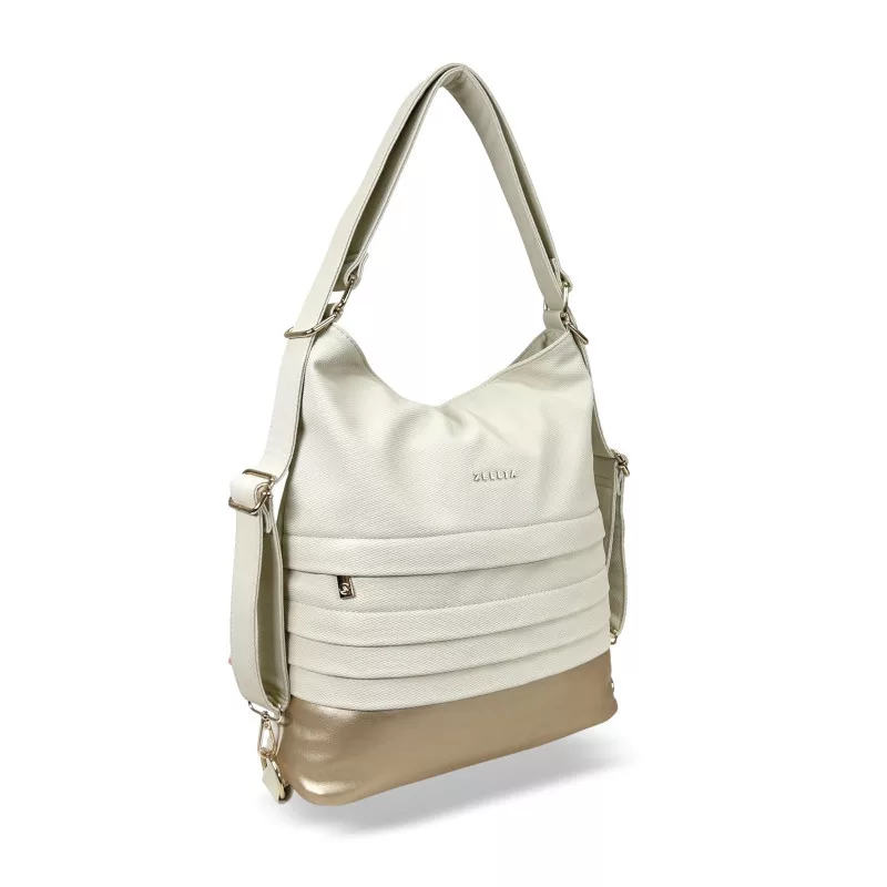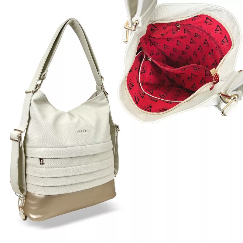 Multifunkčné tašky Zellia sú určené pre tie, ktoré si neradi vyberajú. Medzi pohodlím a vzhľadom. Béžovo-zlato-šampanský model je navrhnutý do detailov tak, aby spĺňal potreby modernej ženy. je to pravda – či už ide o pracovný deň, útek alebo mestské dobrodružstvo.