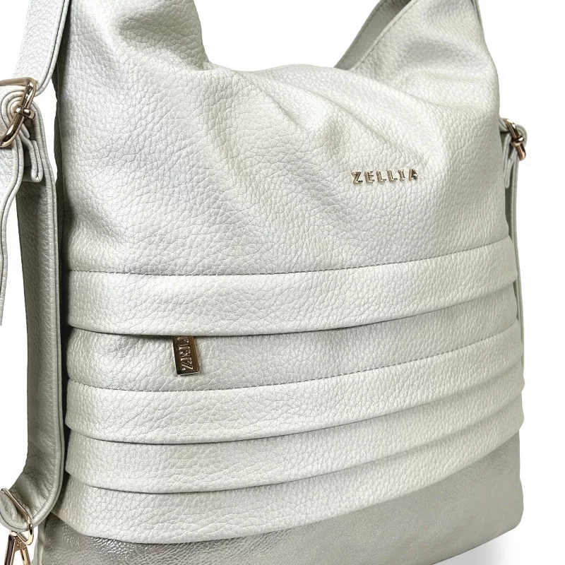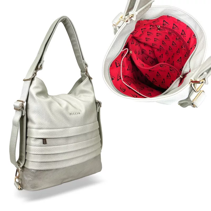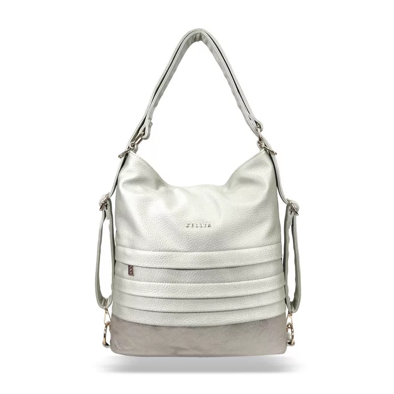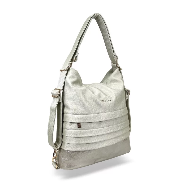 Dámska taška cez rameno Zellia Hz-111, ktorú možno premeniť na batoh, perleťovo-zlatá 37 x 13 x 3 cm