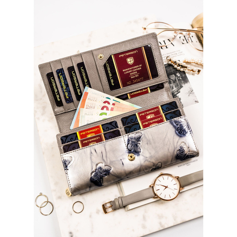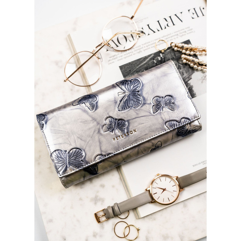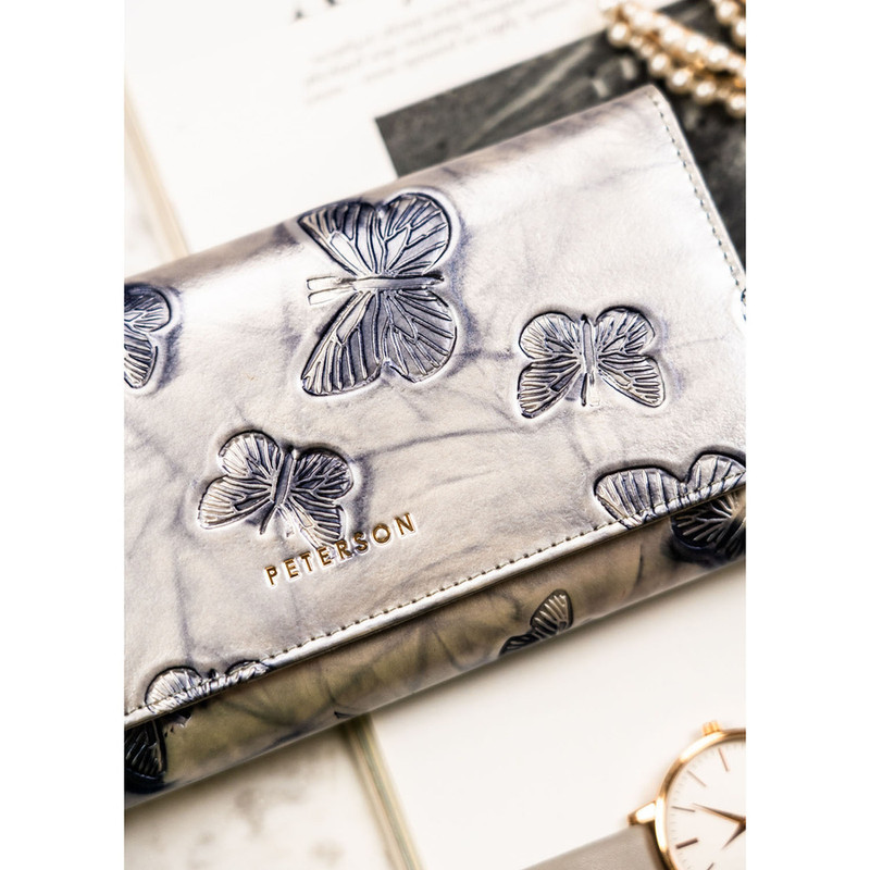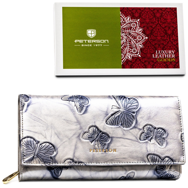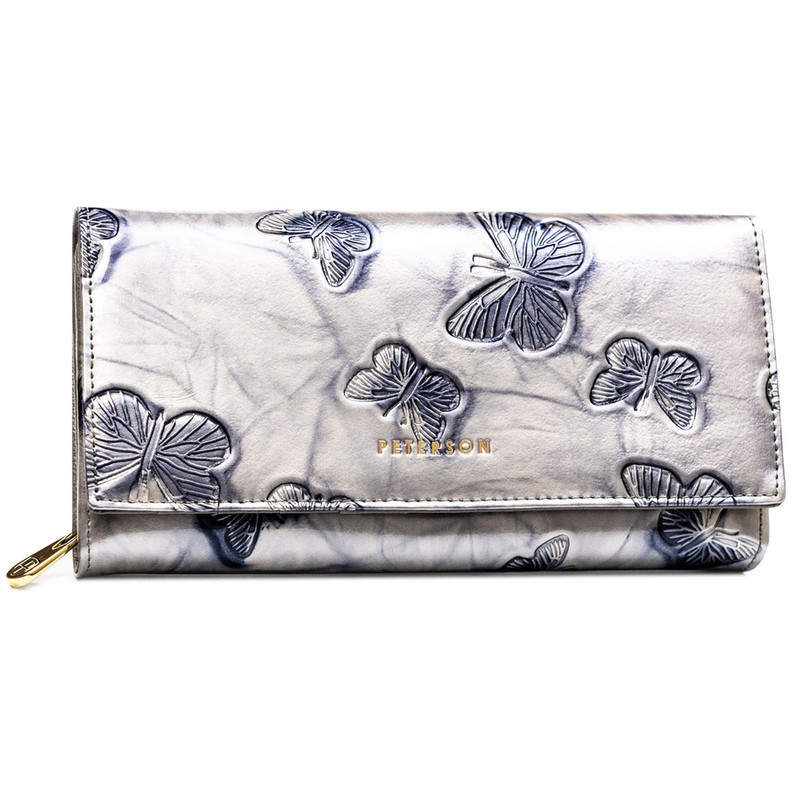 Dámska kožená peňaženka Peterson Silver – reliéfne motýle, lesklý vzhľad a praktický dizajn s RFID ochranou