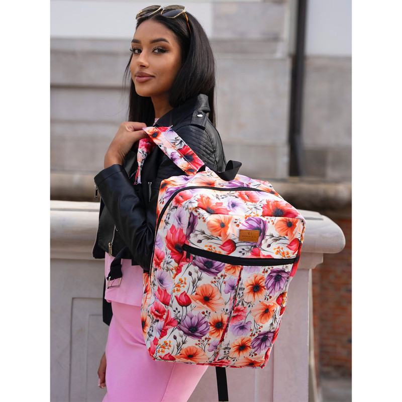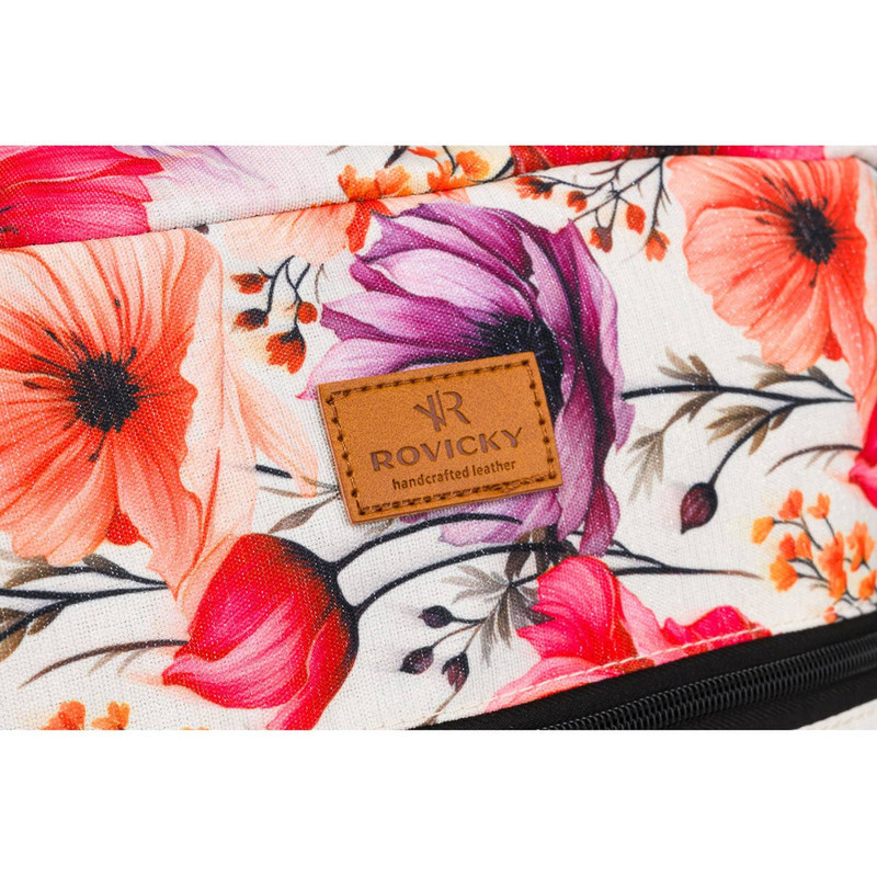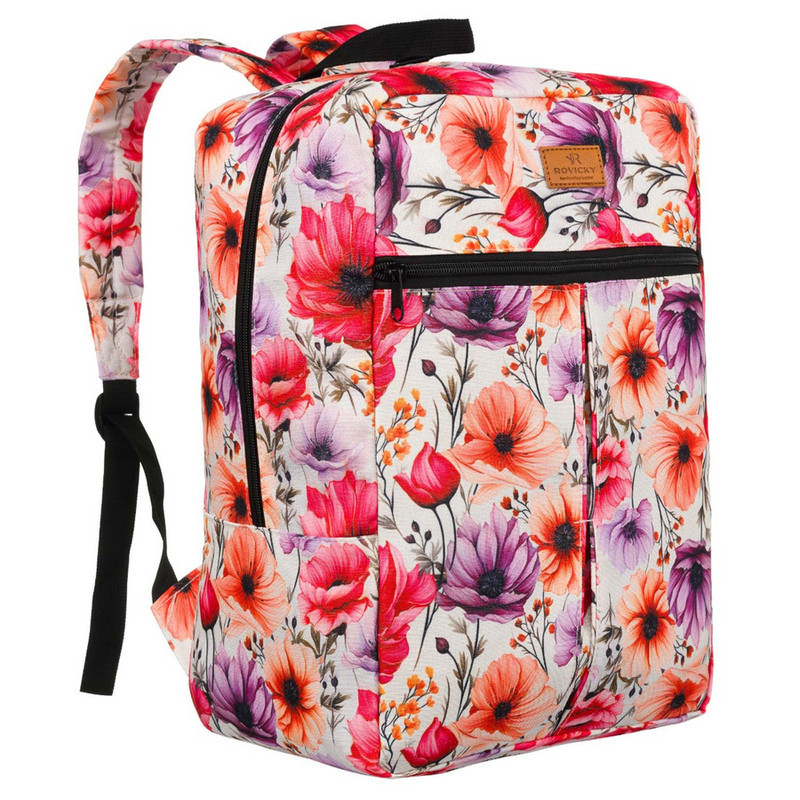 Pohodlný jednokomorový cestovný ruksak od známej poľskej značky ROVICKY®. Model v športovom štýle zdobený módnym vzorom s rastlinnou tematikou. Vyrobený podľa požiadaviek leteckej spoločnosti na bezplatnú príručnú batožinu.