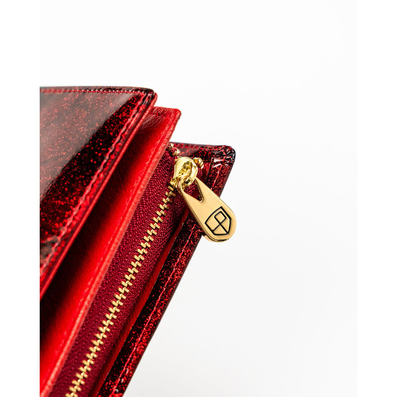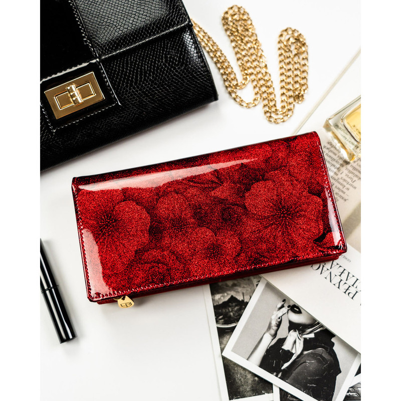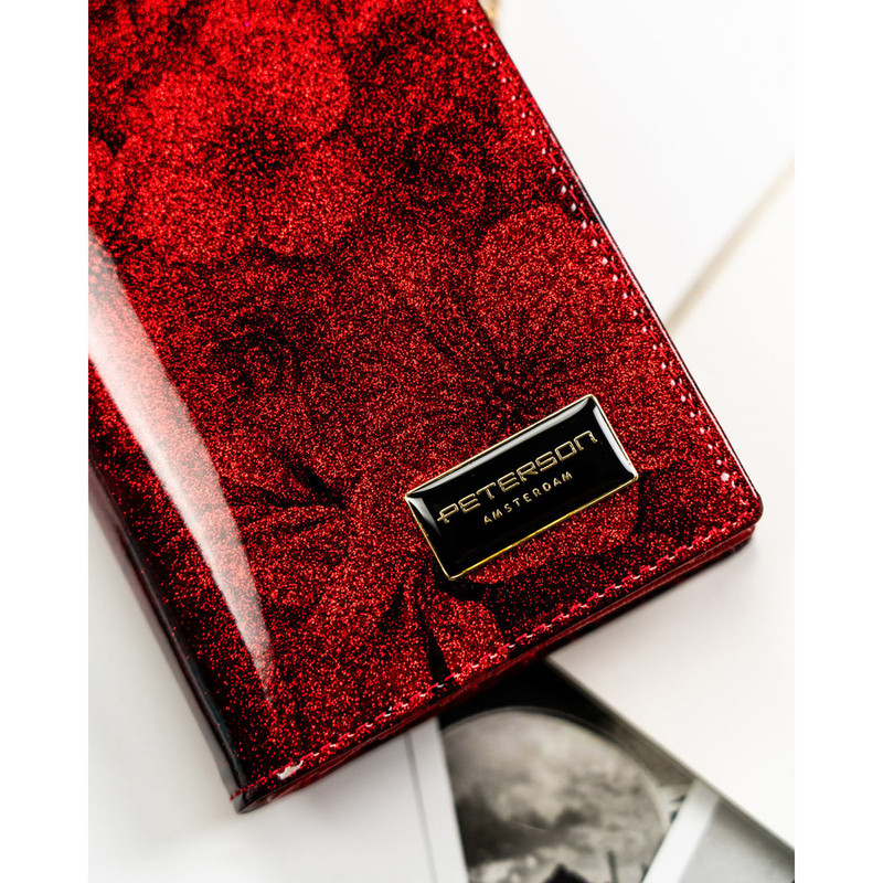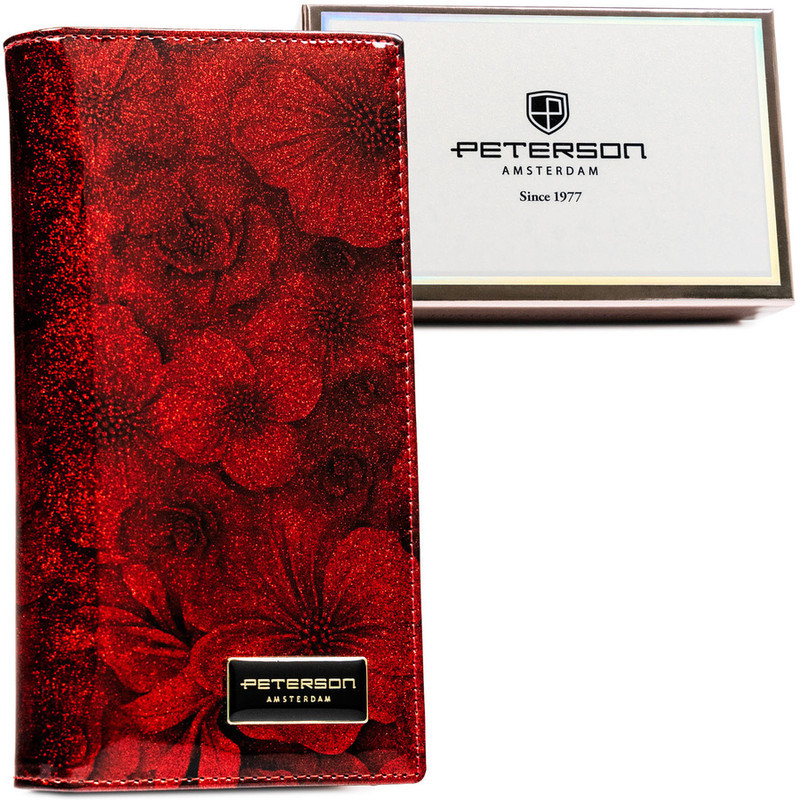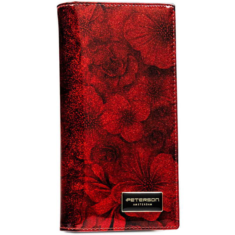 Dámska kožená peňaženka Peterson červená – Elegantný kvetinový vzor s magnetickým a zipsovým zapínaním, RFID ochrana