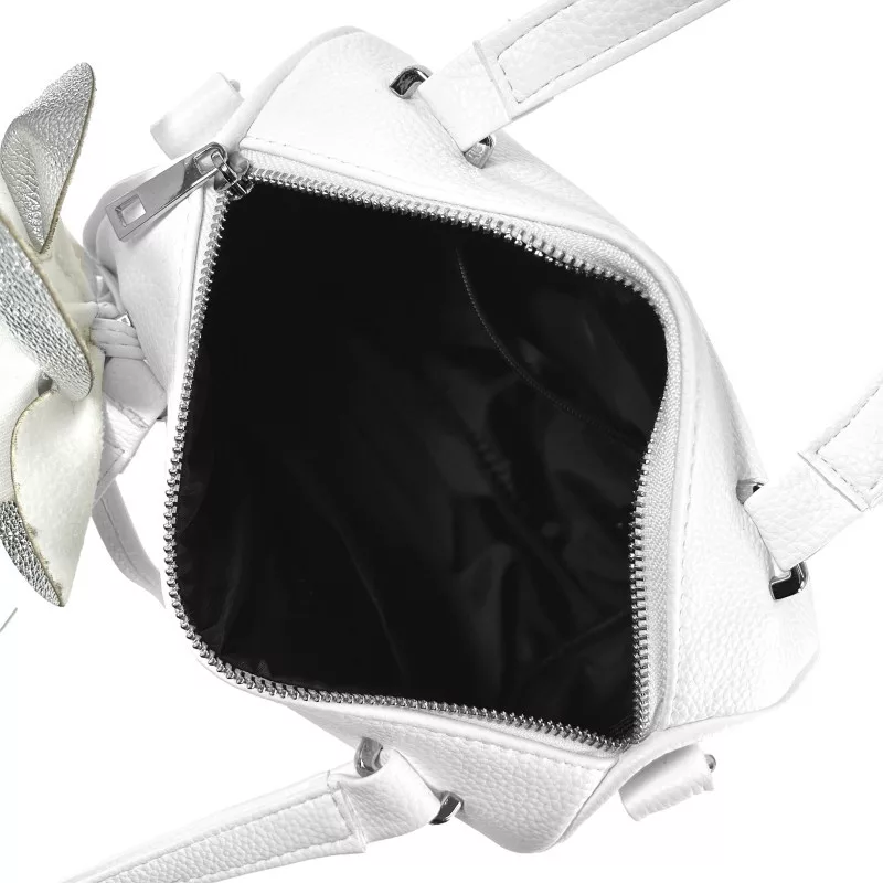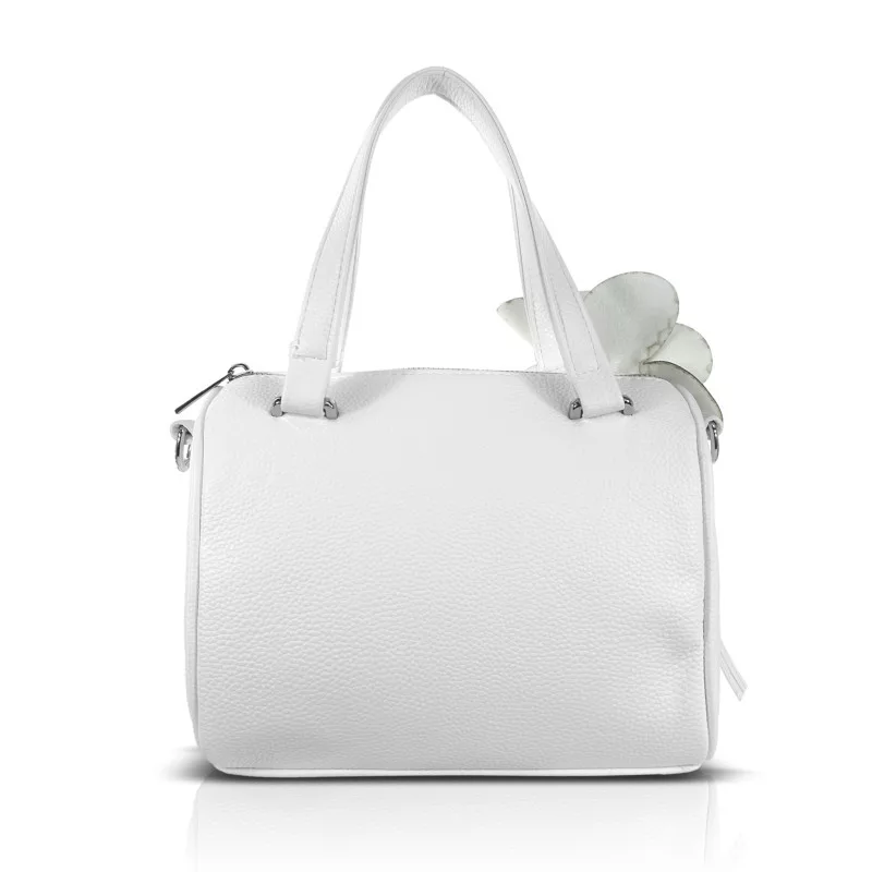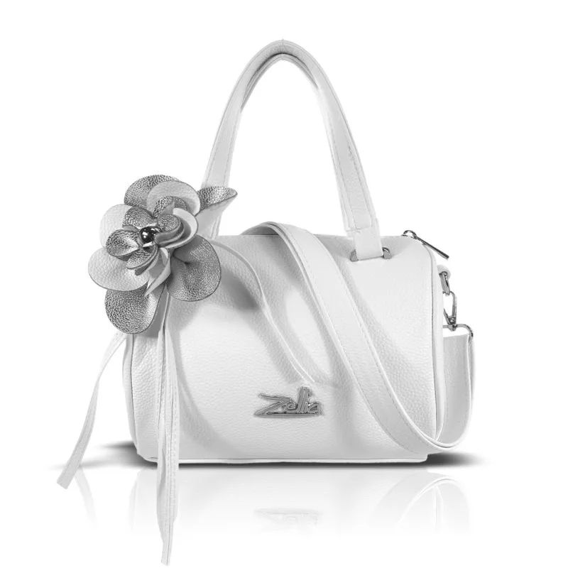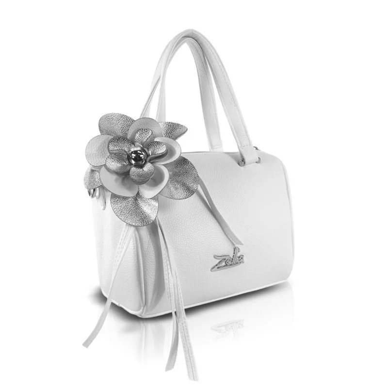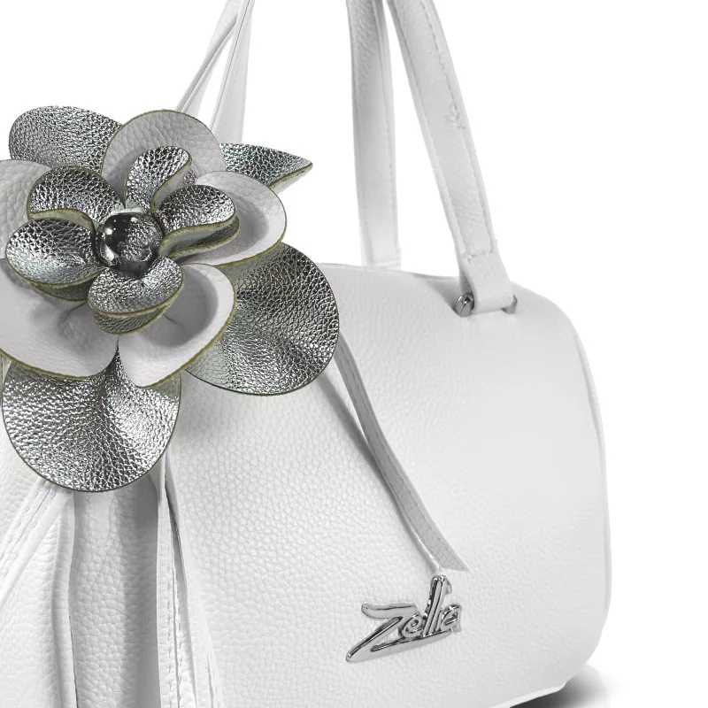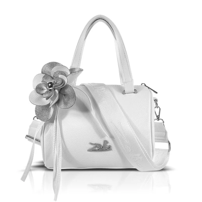 A Zellia 26024F fehér női kézitáska ezüst virágdísszel elegáns és kifinomult megjelenésével a mindennapok és alkalmi megjelenések stílusos kiegészítője. A tiszta fehér alapot az ezüst virágdísz és kiegészítők teszik különlegessé, így modern és nőies összhatást biztosítanak. Kompakt mérete ellenére praktikus kialakítással rendelkezik.