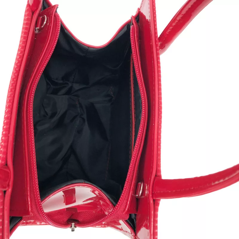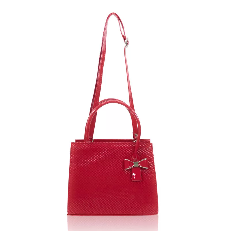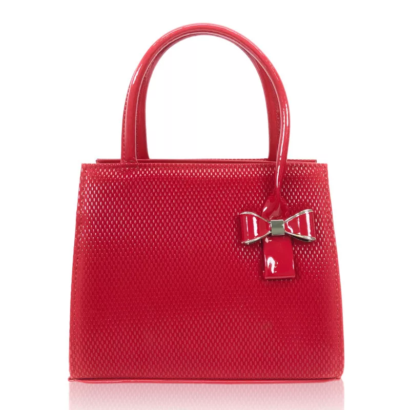 Dámska kabelka Zellia červenej farby s tlačeným vzorom, mašľou, módnou taškou