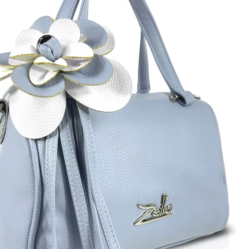 Zellia 26024F babakék női kézitáska virágdísszel 24 x 18 x 10 cm