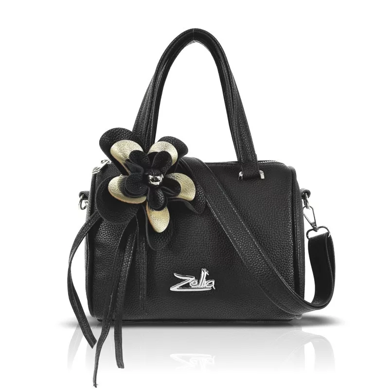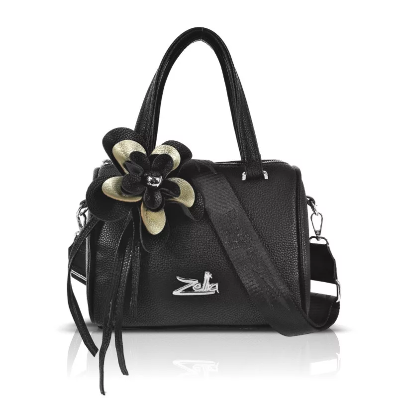 A Zellia 26024F fekete női kézitáska arany virágdísszel elegáns és karakteres megjelenésével a mindennapok és alkalmi megjelenések különleges kiegészítője. A klasszikus fekete alapot az arany virágdísz és kiegészítők teszik igazán hangsúlyossá, így luxus hatású, nőies összhatást biztosítanak. Kompakt mérete ellenére praktikus kialakítással rendelkezik.
