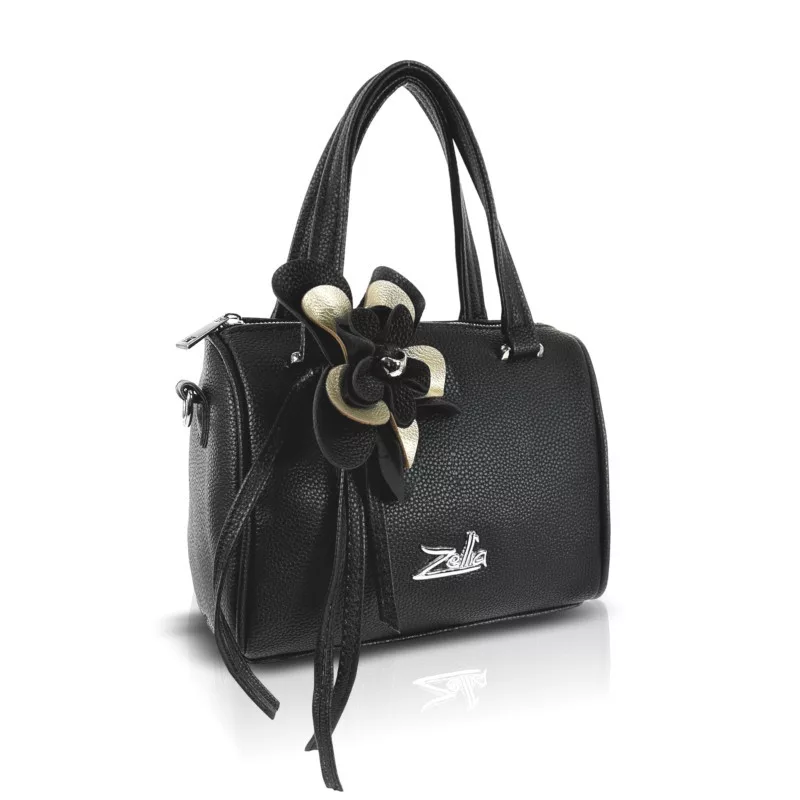 Zellia 26024F fekete-arany női kézitáska virágdísszel 24 x 18 x 10 cm