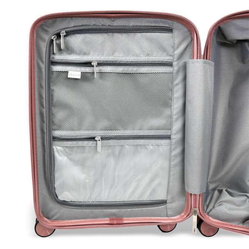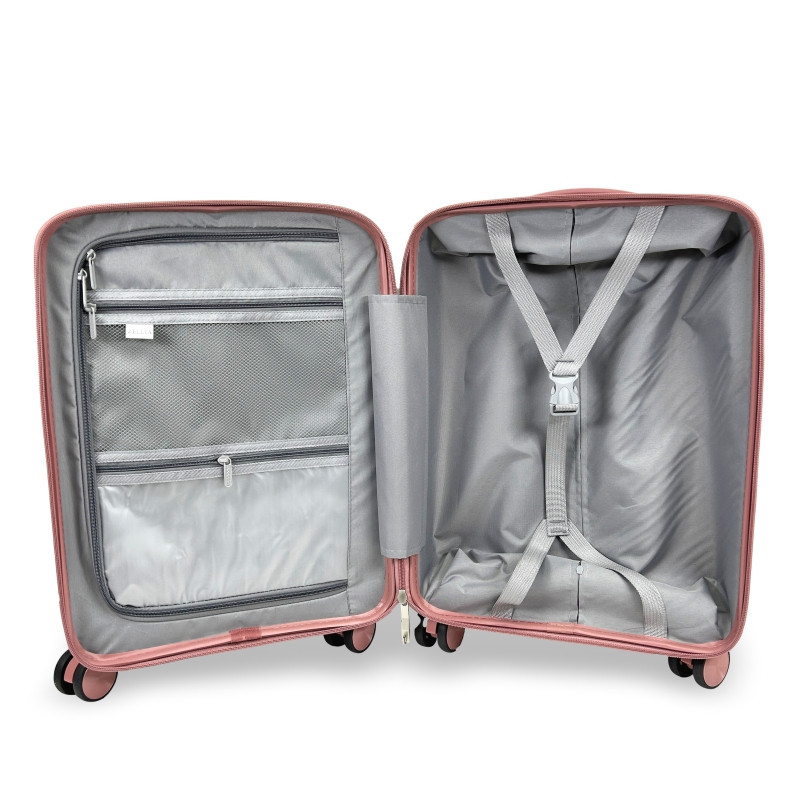 Interiér kufra bol starostlivo navrhnutýtak, aby bol praktický a organizovaný v každej fáze cesty. Na jednej strane je priehradka na zips, ktorá bezpečne oddeľuje rôzne predmety, zatiaľ čo na druhej strane nastaviteľné popruhy pomáhajú udržať oblečenie a iné veci na mieste. Priestranný interiér ponúka dostatok miesta pre krátke aj dlhé cesty.