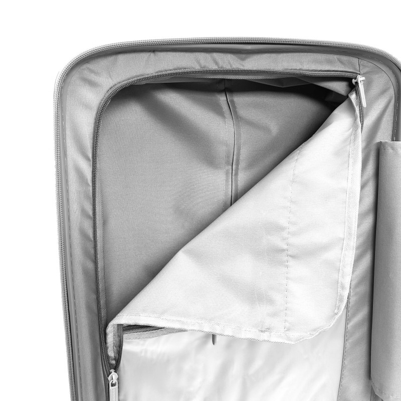 Interiér kufra bol starostlivo navrhnutýtak, aby bol praktický a organizovaný v každej fáze cesty. Na jednej strane je priehradka na zips, ktorá bezpečne oddeľuje rôzne predmety, zatiaľ čo na druhej strane nastaviteľné popruhy pomáhajú udržať oblečenie a iné veci na mieste. Priestranný interiér ponúka dostatok miesta pre krátke aj dlhé cesty.