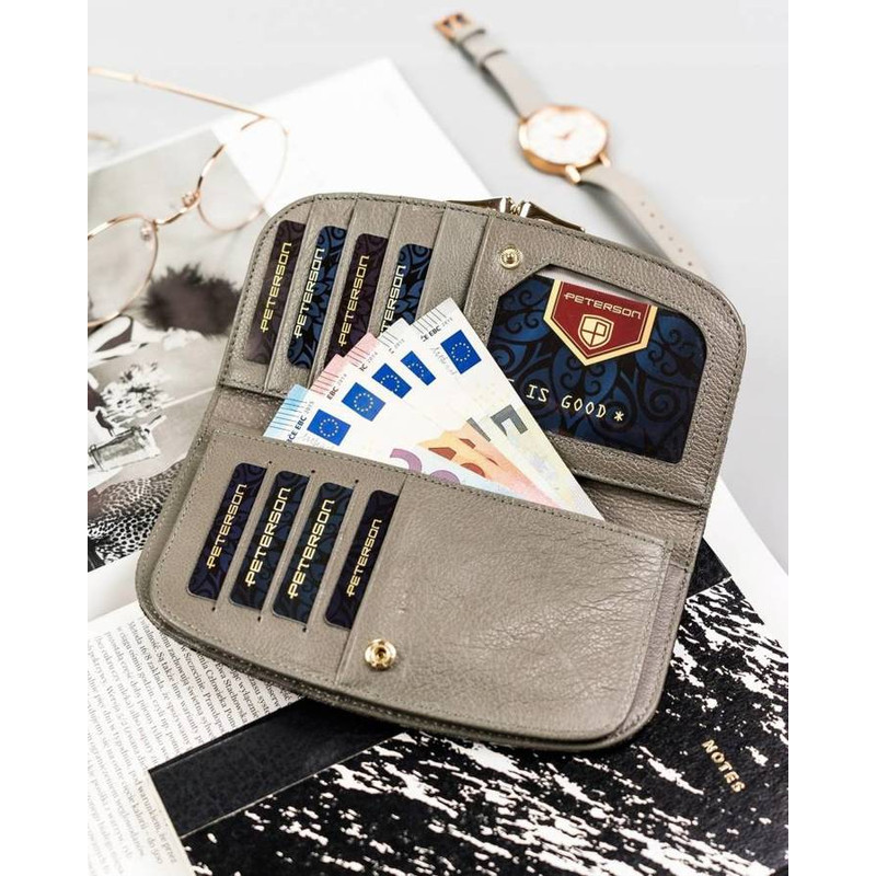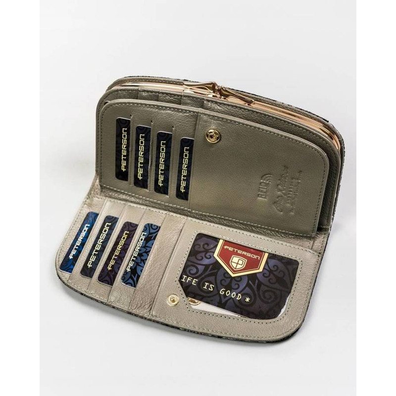 Vzorovaná, sivá dámska kožená peňaženka Peterson s RFID ochranou 18,5×10 cm